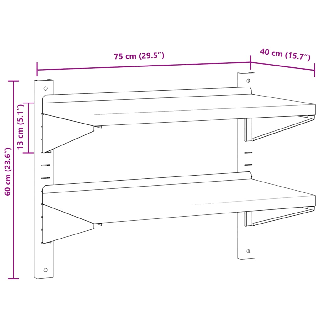 Seinähylly 2-kerroksinen 75x40x60 cm hopea ruostumaton teräs