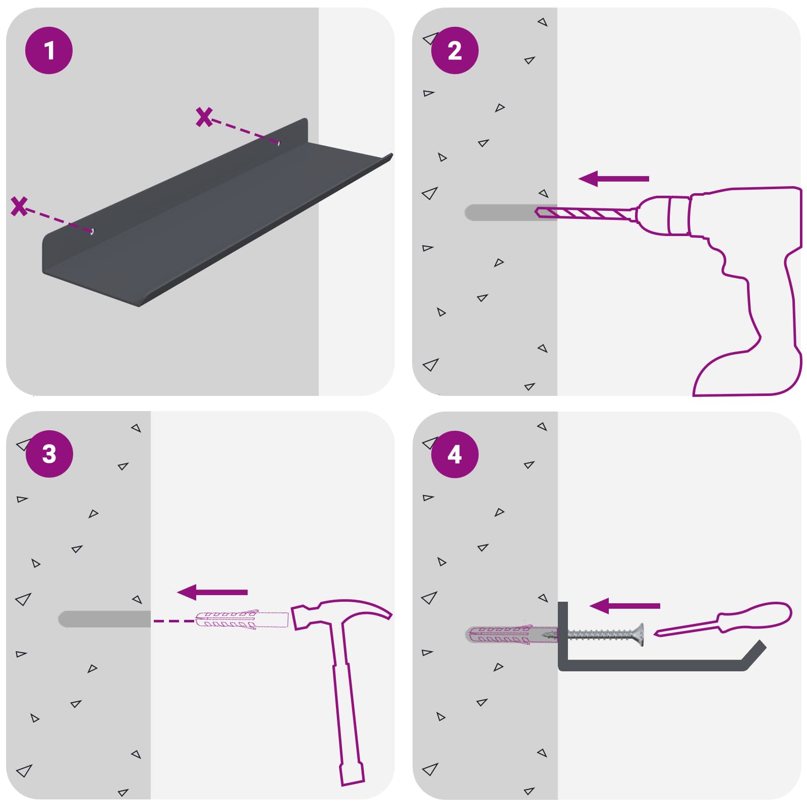• 1 x Keskikokoinen seinähylly: 35,9 x 9 x 2,5 (P x L x K)