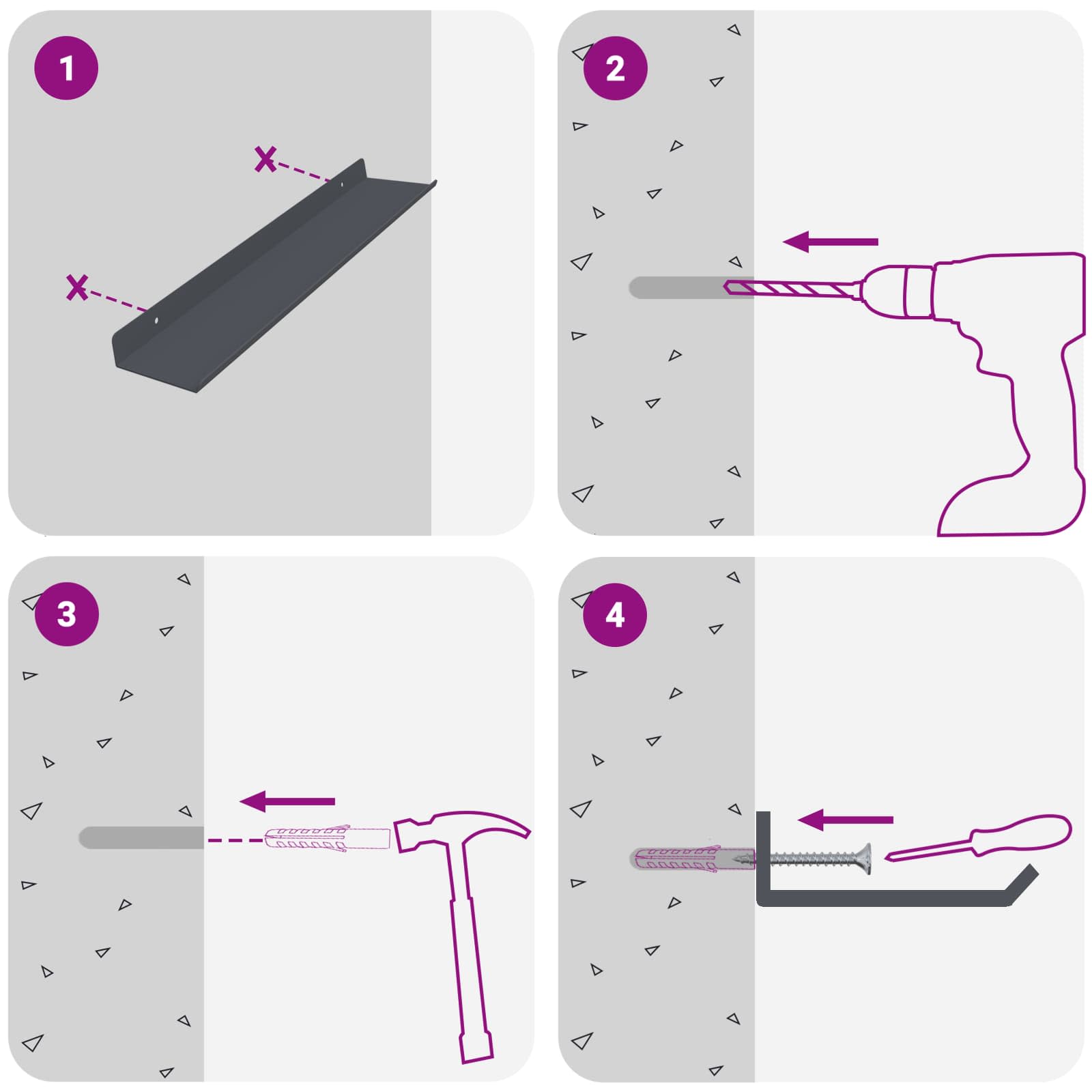 • Mukana 4 seinäkiinnitetyt hyllyt
