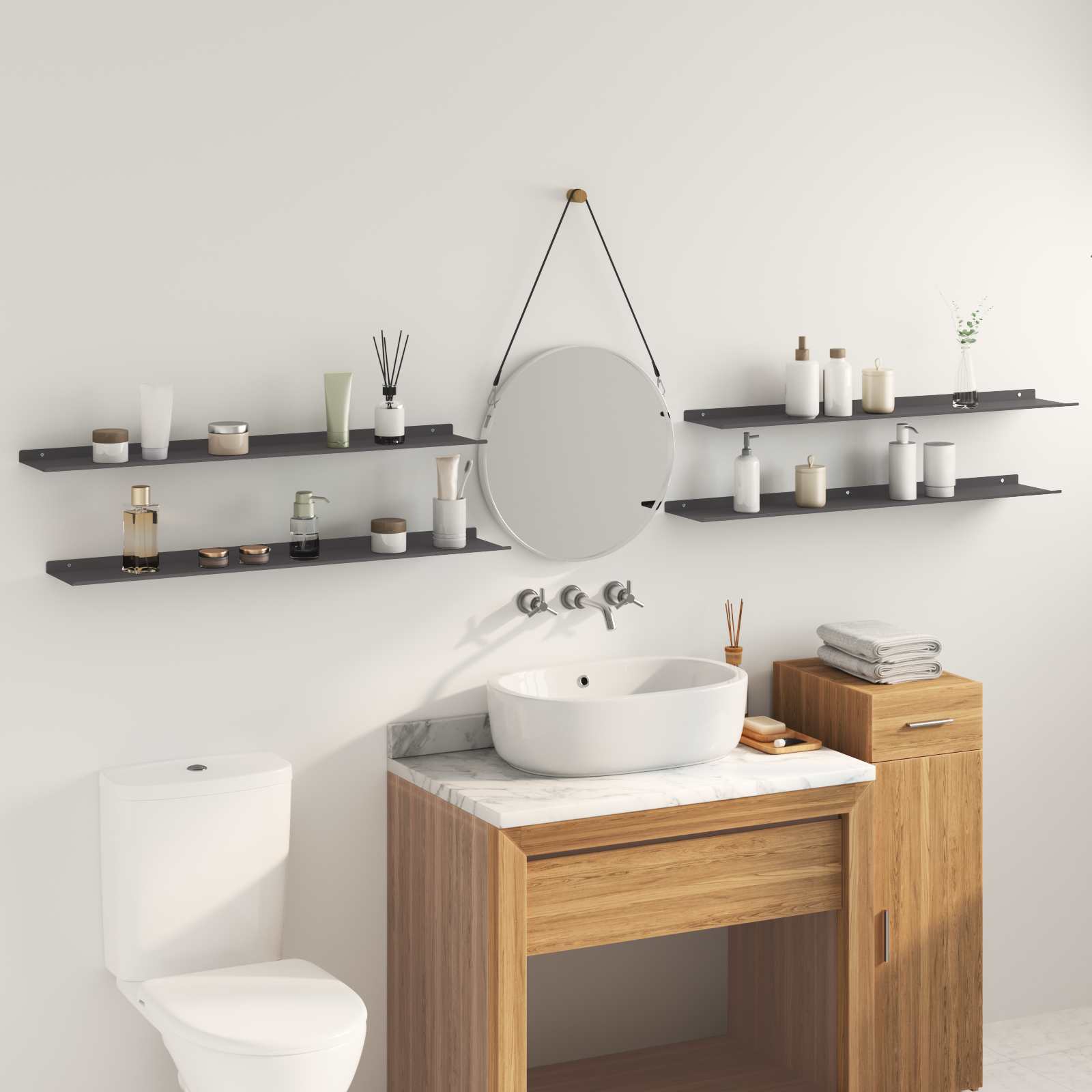• Mukana 4 seinäkiinnitetyt hyllyt