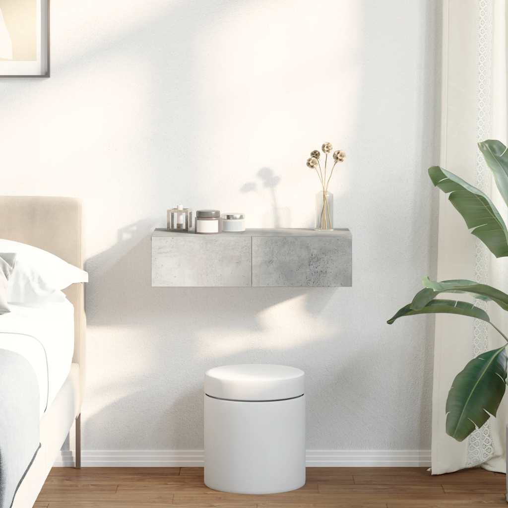 Seinähylly laatikoilla betoninharmaa 60×26,5×15 cm tekninen puu