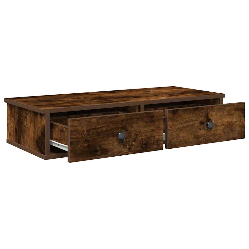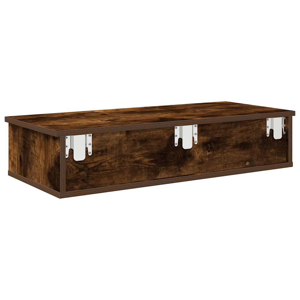 Seinähylly laatikoilla savutammi 80x34x17 cm tekninen puu