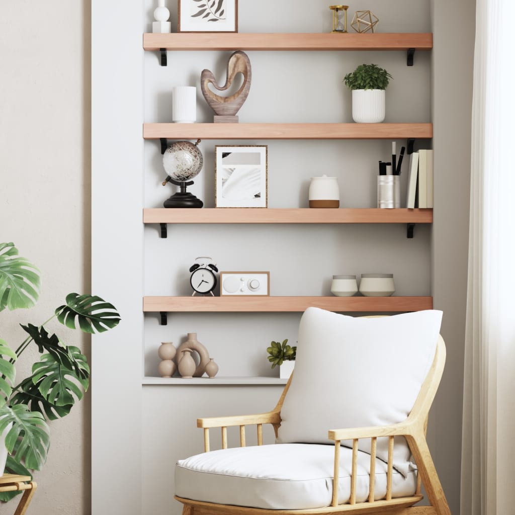 • Käsitelty pinta: Puinen hylly on lakattu, joten se on käyttövalmis, eikä lisäviimeistelyjä tarvita.