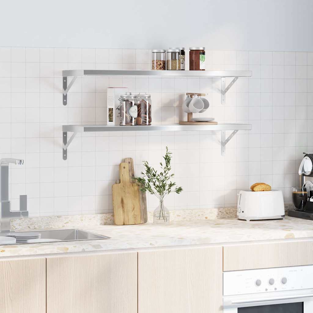 Seinähyllyt 2 kpl 100x30x3 cm hopea ruostumaton teräs