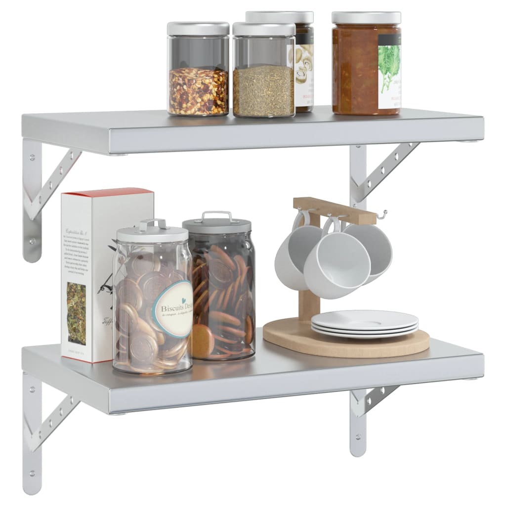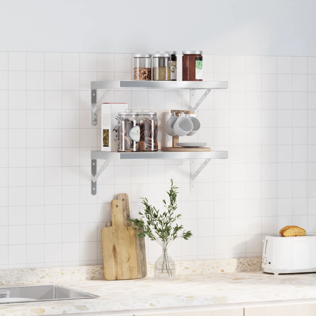 Seinähyllyt 2 kpl 50x30x3 cm hopea ruostumaton teräs