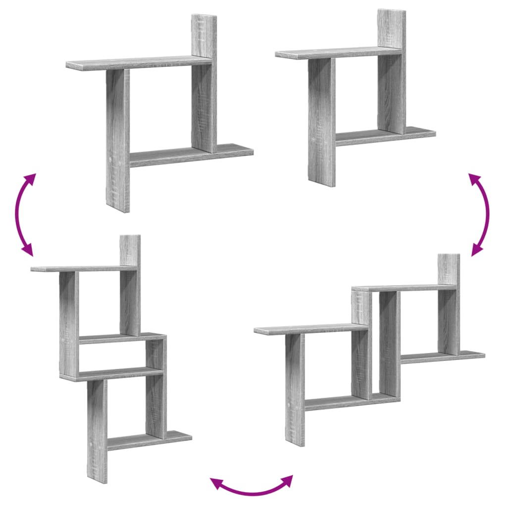 Seinähyllyt 2 kpl harmaa Sonoma 50x12x50 cm tekninen puu