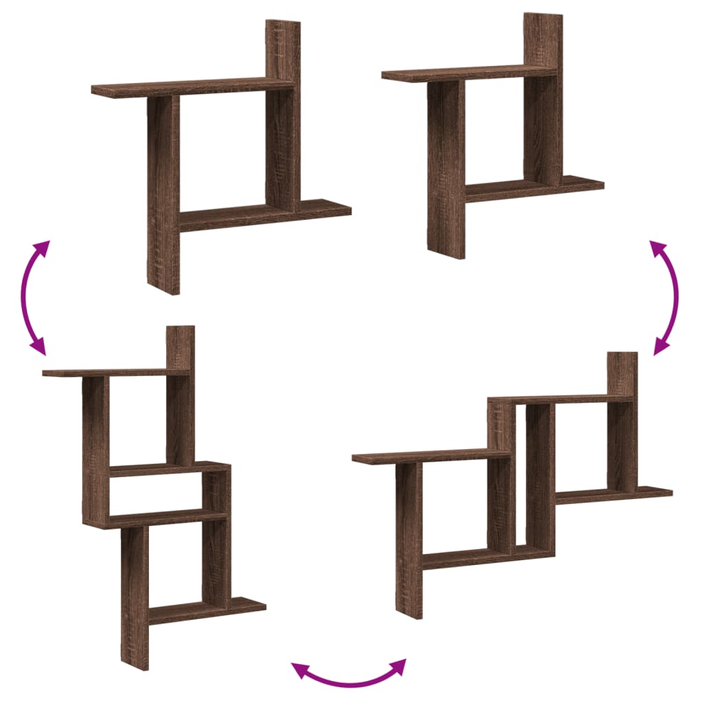 Seinähyllyt 2 kpl ruskea tammi 50x12x50 cm tekninen puu
