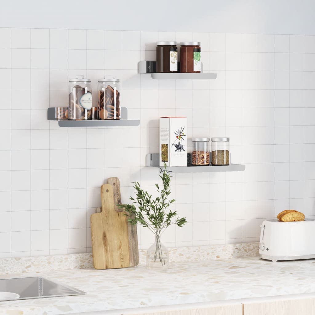 Seinähyllyt 3 kpl hopea ruostumaton teräs