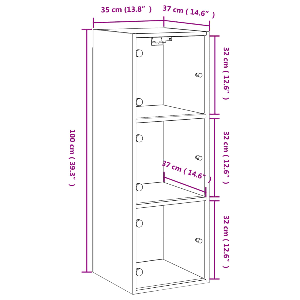 Seinäkaappi lasiovilla savutammi 35x37x100 cm