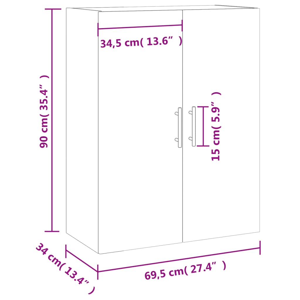 Seinäkiinnitettävä kaappi betoninharmaa 69,5x34x90 cm