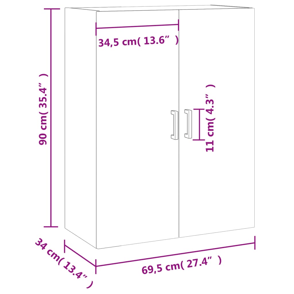 Seinäkiinnitettävä kaappi harmaa Sonoma 69,5x34x90 cm