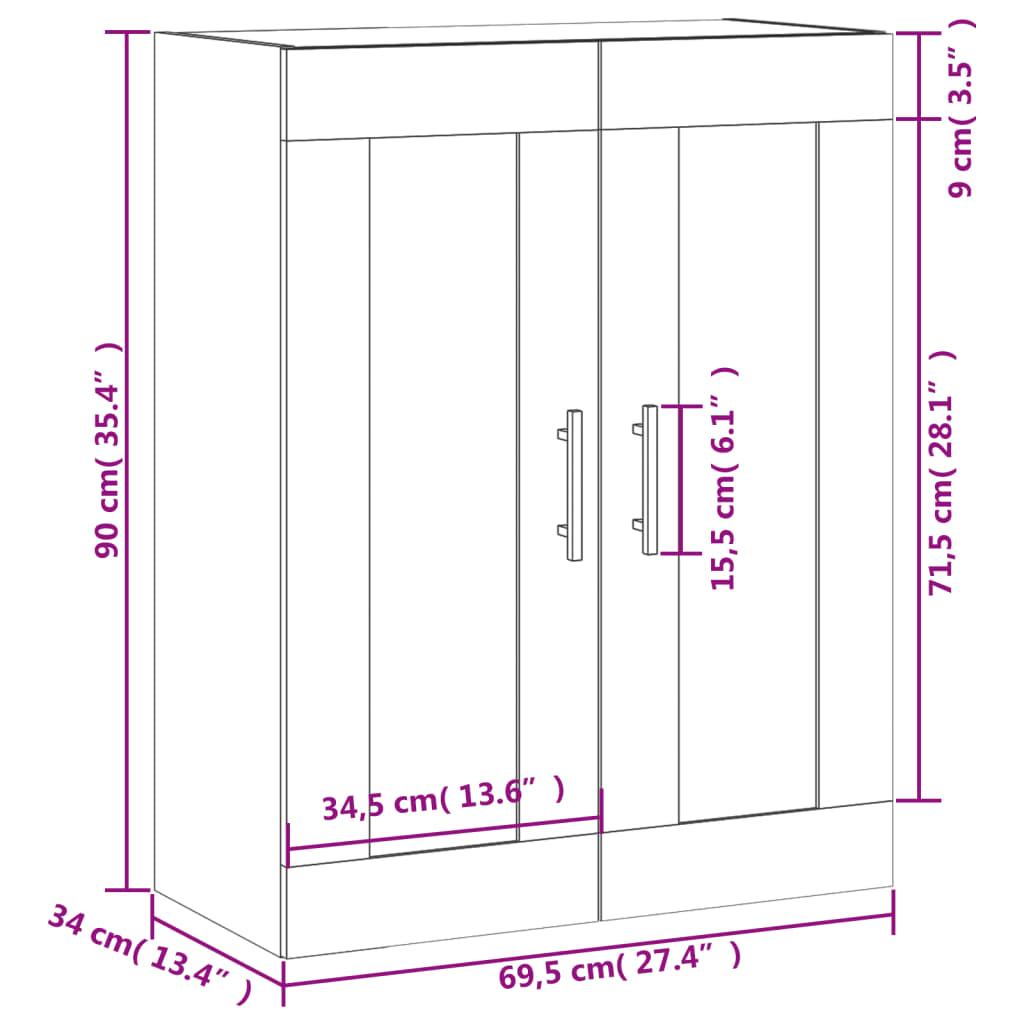Seinäkiinnitettävä kaappi rusk tammi 69,5x34x90 cm tekninen puu