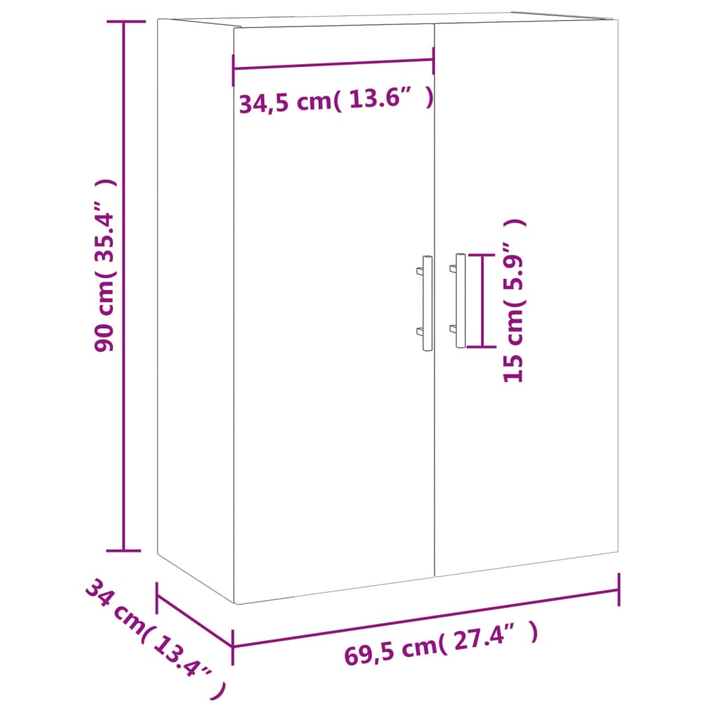 Seinäkiinnitettävä kaappi Sonoma-tammi 69,5x34x90 cm