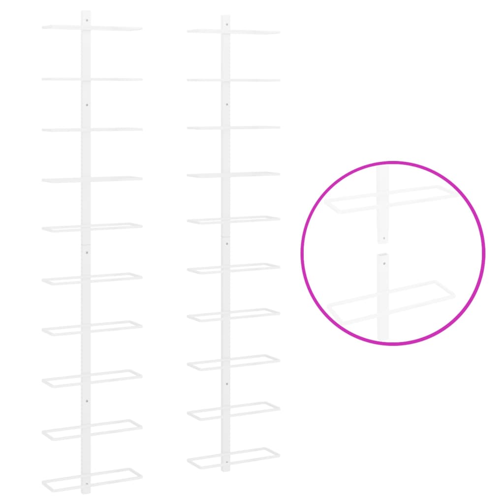 Seinäkiinnitettävä viinipulloteline 10 pullolle 2 kpl valkoinen