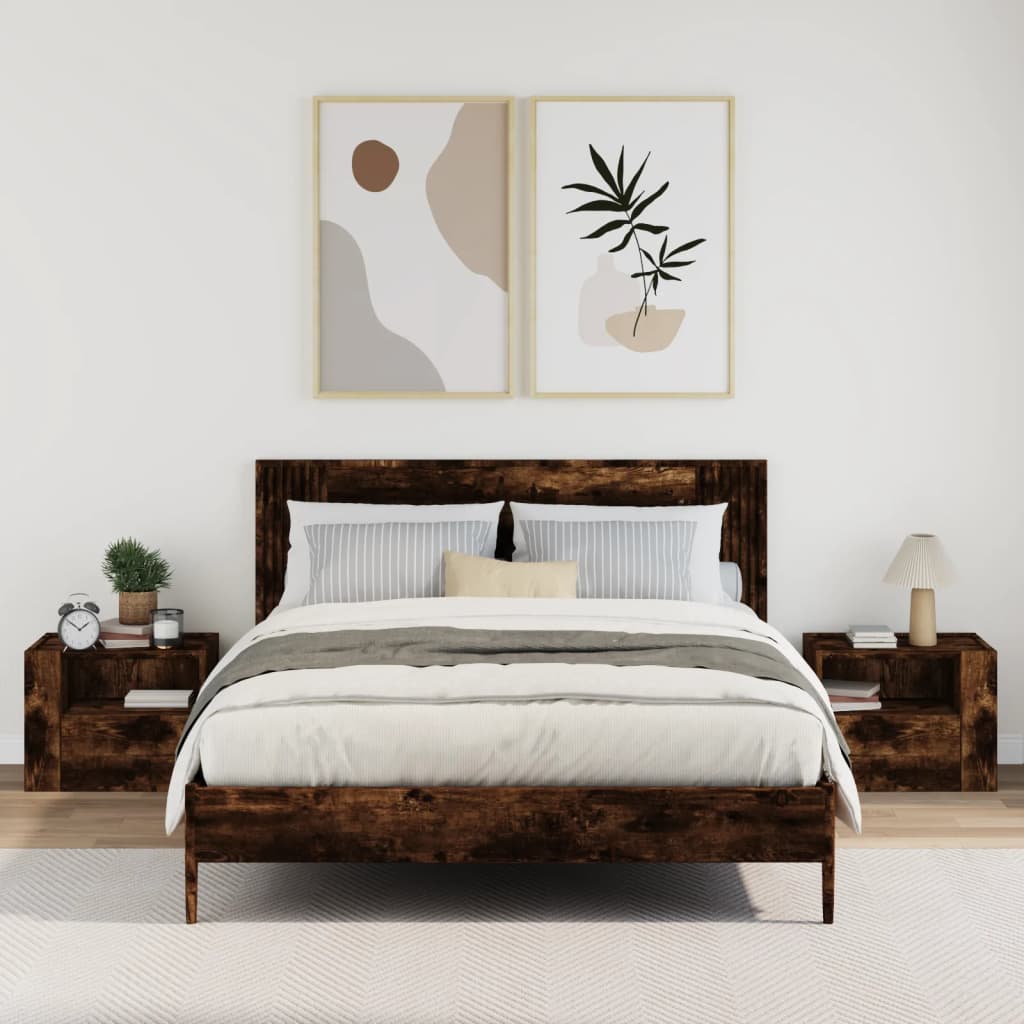 Seinäkiinnitettävät yöpöydät 2 kpl savutammi 45x30x35 cm