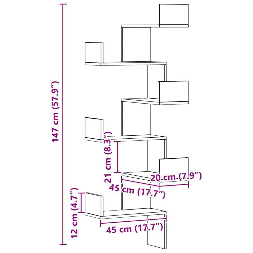 Seinäkulmahylly artesaanitammi 45x45x147 cm tekninen puu