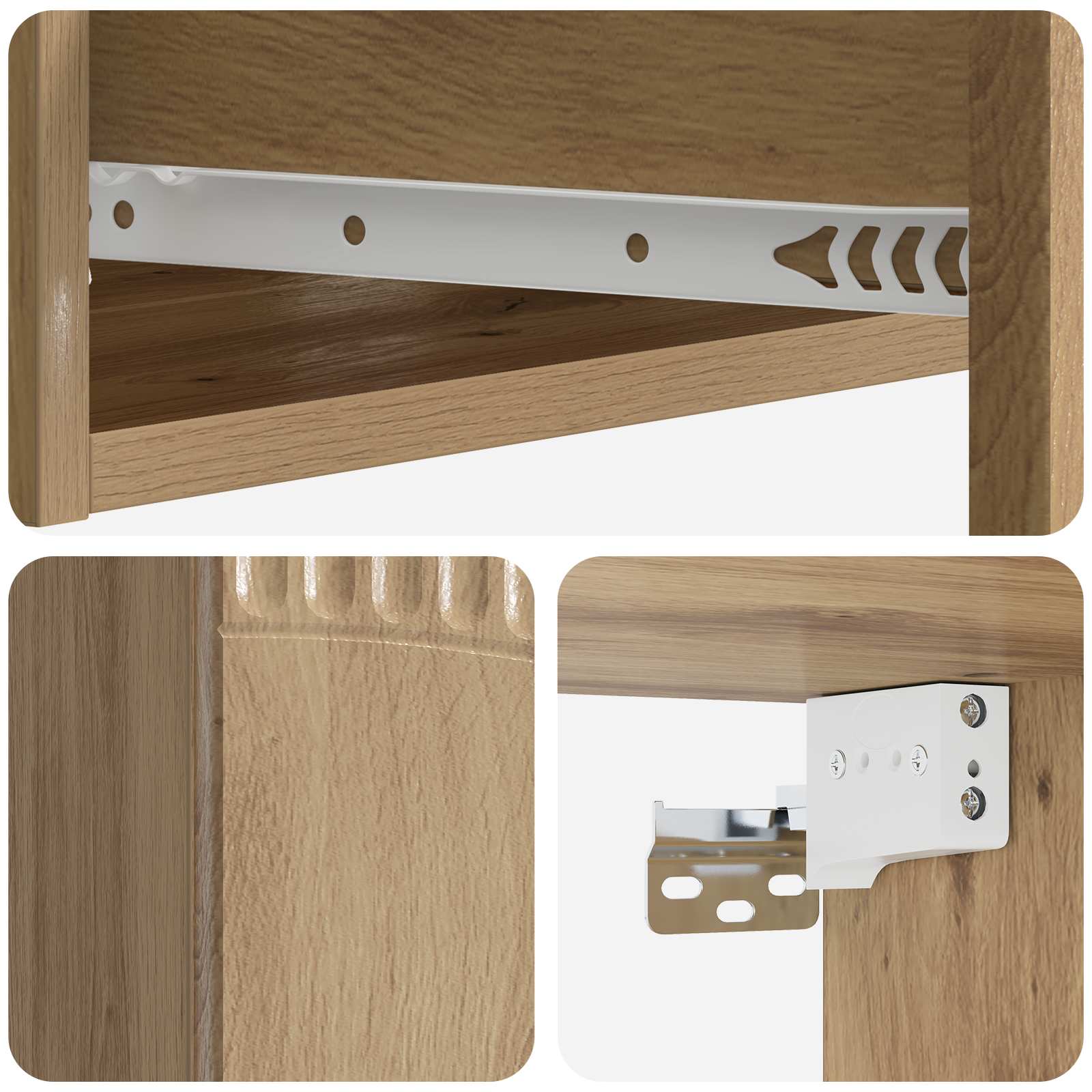 • Tyylikkäät materiaalit: Tämä kaappi on valmistettu teknisestä puusta, ja siinä yhdistyvät kestävyys ja kaunis ilme. Viimeistely tuo modernia tyyliä sisätiloihin, luoden eleganssia ja käytännöllisyyttä.