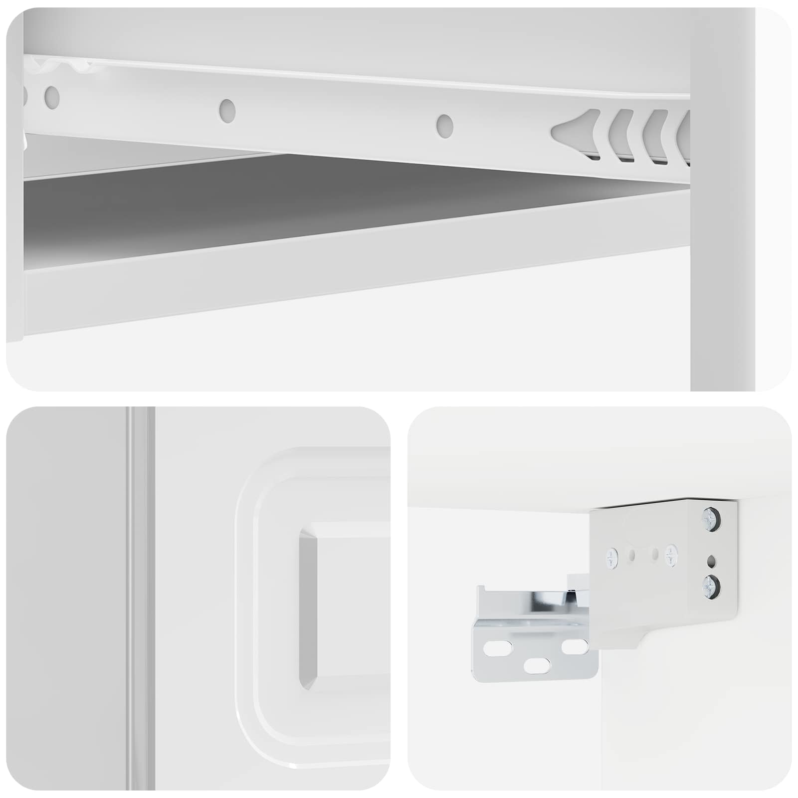 • Sisältö: Säädettävät hyllyt ja lukittavat ovet tarjoavat monipuolista säilytystä. Kaikki omaisuutesi pysyy turvassa, oli kyseessä kirjat, asiakirjat tai henkilökohtaiset tavarat.