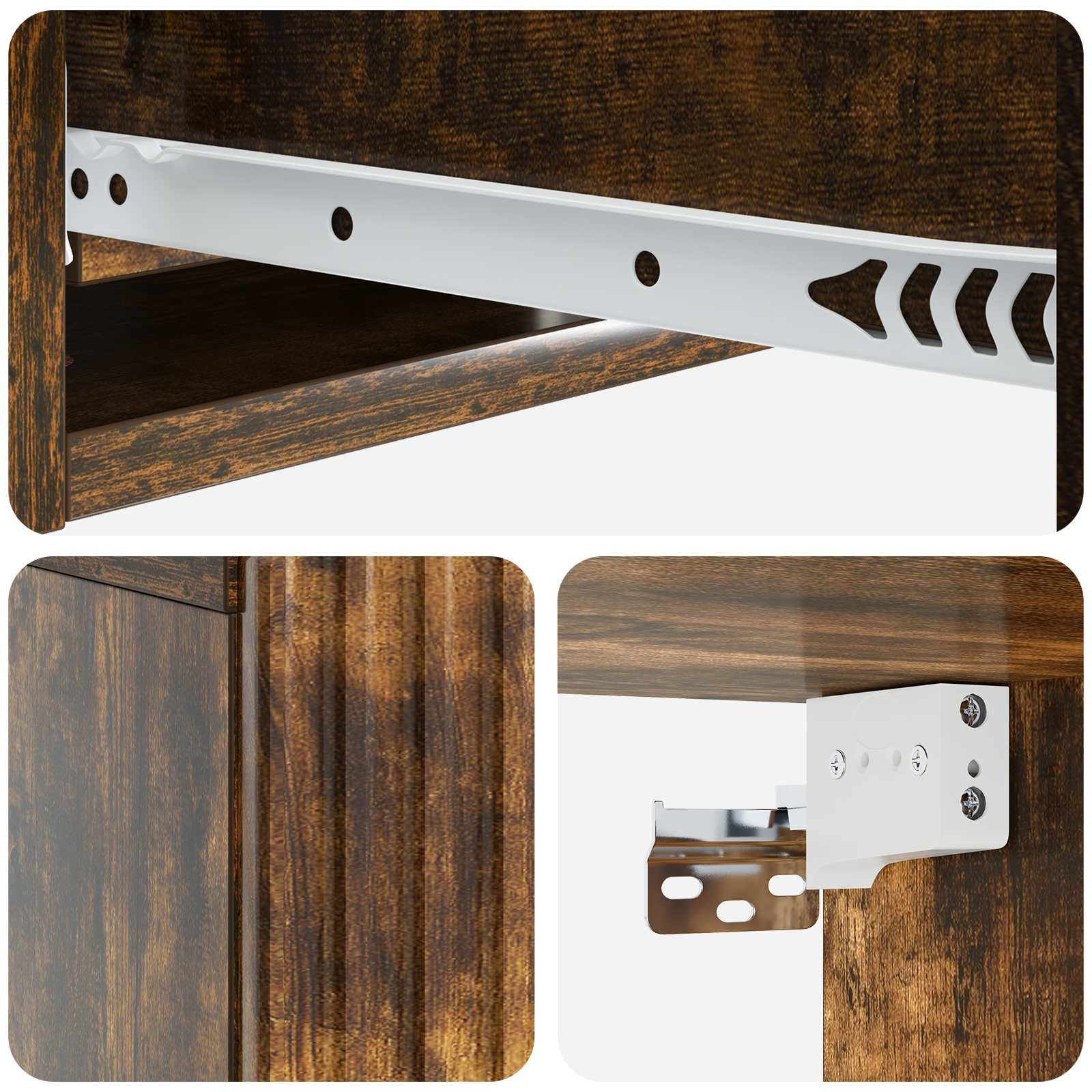 • Runsaasti säilytystilaa: Seinälle kiinnitettävä muotoilu sisältää tilavat osastot, jotka tarjoavat runsaasti säilytystilaa kirjoille, esim. laitteille tai koriste-esineille. Muoto mahdollistaa tilan tehokkaan hyödyntämisen, sopii pieniin koteihin tai ahtaisiin huoneisiin.