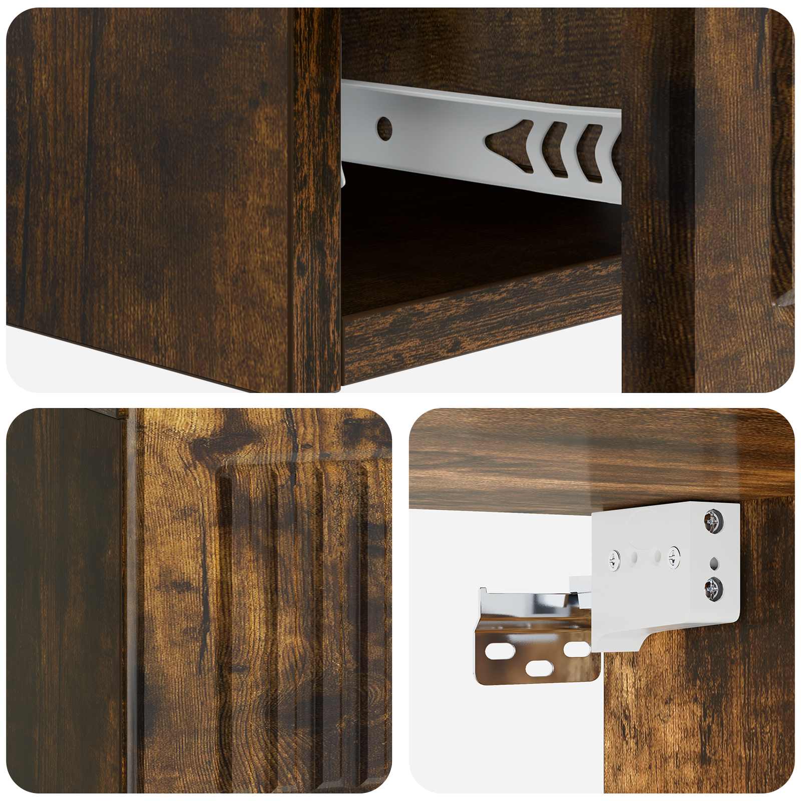 • Seinäkiinnitys Tämä sivupöytä on suunniteltu helppoon seinäkiinnitykseen, mikä säästää lattiatilaa. Sen sulautuva muotoilu sopii täydellisesti moderniin sisustukseen ja lisää esteettisyyttä.