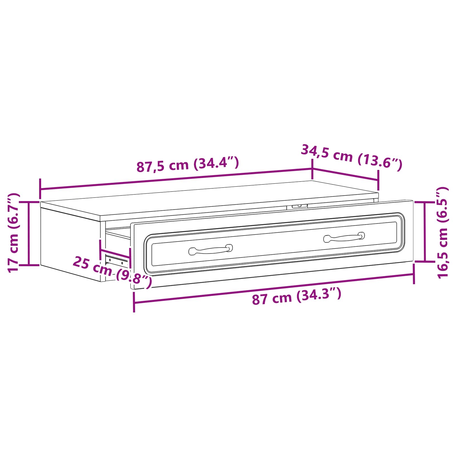 Seinälle Asennettava Sivupöytä Savutammi 87,5 x 34,5 x 17 cm