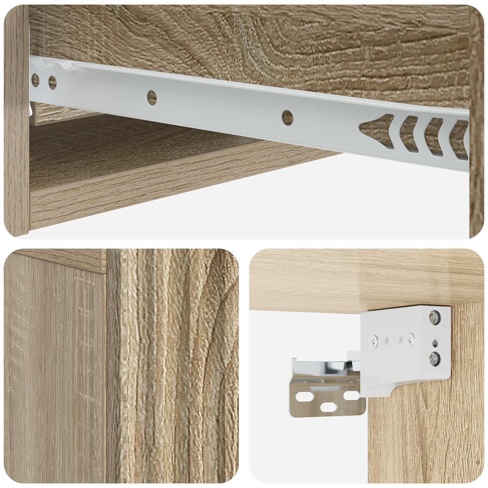 • Runsaasti säilytystilaa: Seinälle kiinnitettävä muotoilu sisältää tilavat osastot, jotka tarjoavat runsaasti säilytystilaa kirjoille, esim. laitteille tai koriste-esineille. Muoto mahdollistaa tilan tehokkaan hyödyntämisen, sopii pieniin koteihin tai ahtaisiin huoneisiin.