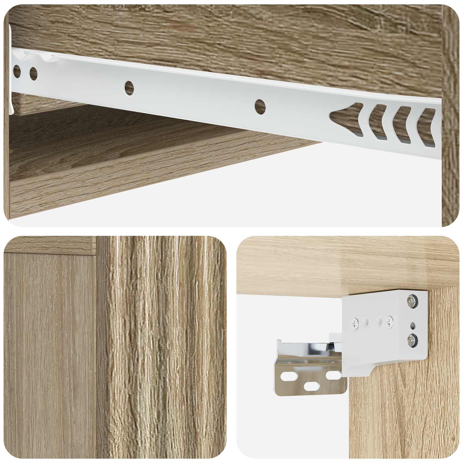 • Runsaasti säilytystilaa: Seinälle kiinnitettävä muotoilu sisältää tilavat osastot, jotka tarjoavat runsaasti säilytystilaa kirjoille, esim. laitteille tai koriste-esineille. Muoto mahdollistaa tilan tehokkaan hyödyntämisen, sopii pieniin koteihin tai ahtaisiin huoneisiin.