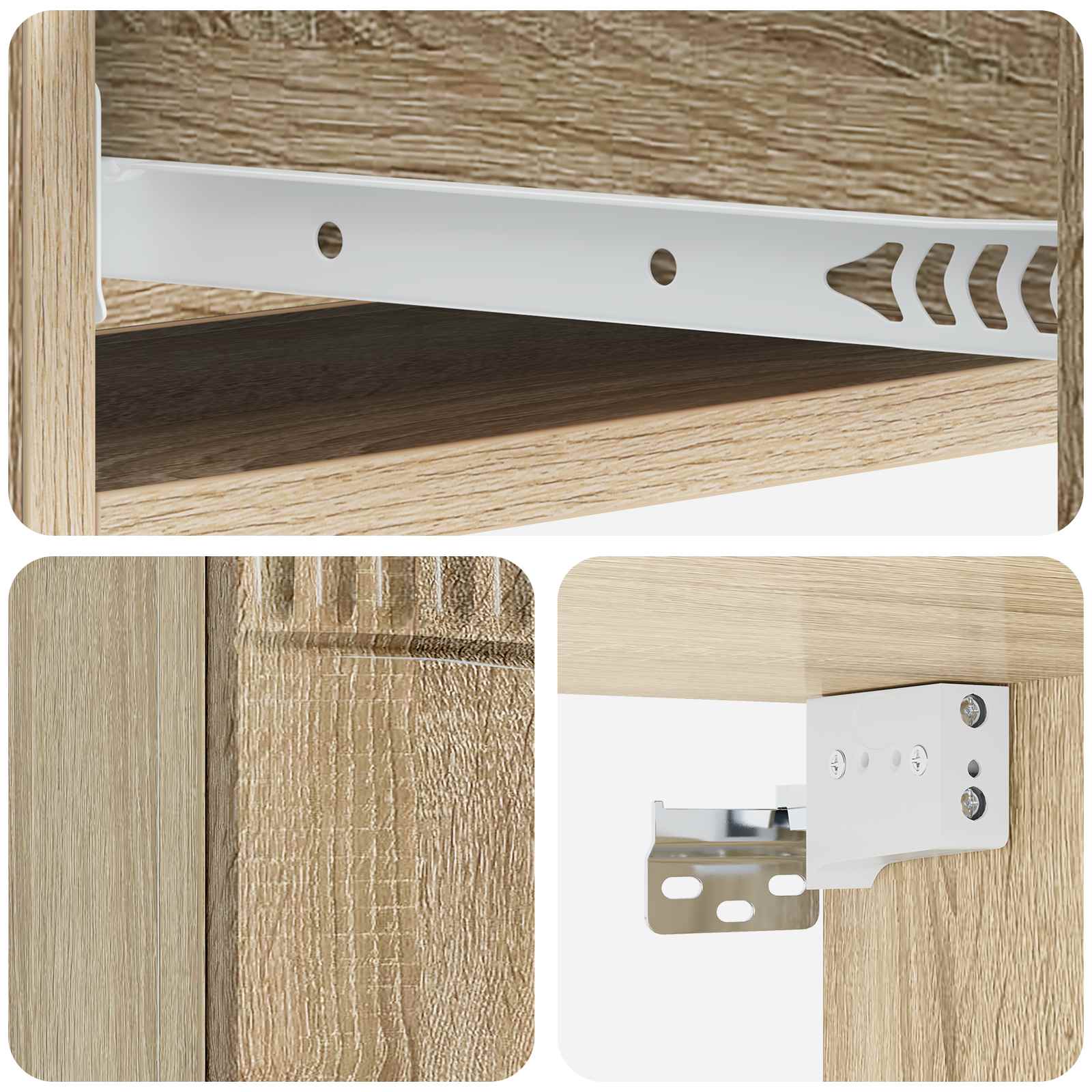 • Tyylikkäät materiaalit: Tämä kaappi on valmistettu teknisestä puusta, ja siinä yhdistyvät kestävyys ja kaunis ilme. Viimeistely tuo modernia tyyliä sisätiloihin, luoden eleganssia ja käytännöllisyyttä.