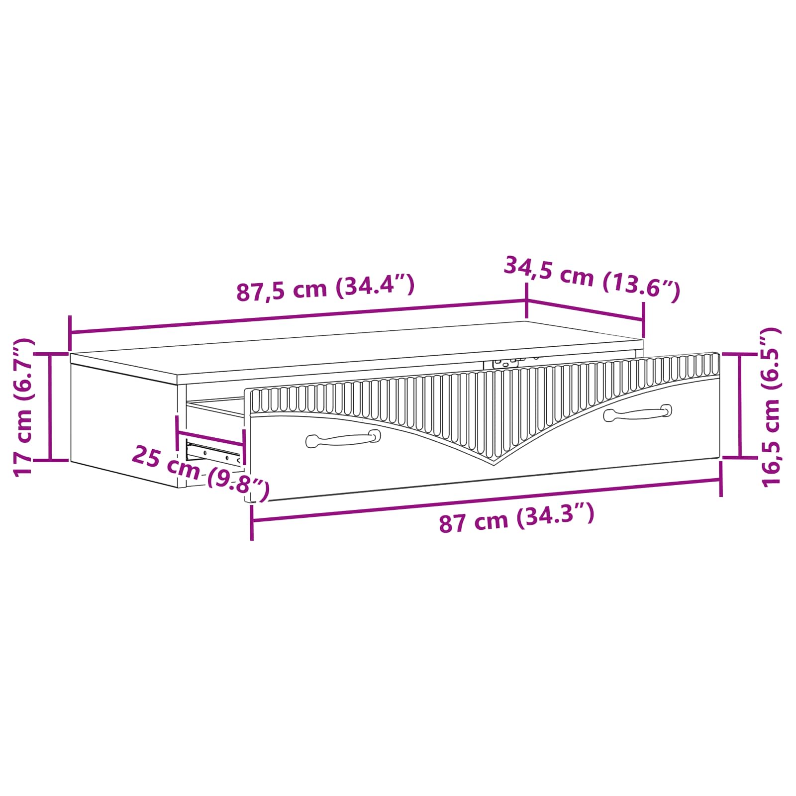 Seinälle Asennettava Sivupöytä Sonoma-tammi 87,5 x 34,5 x 17 cm