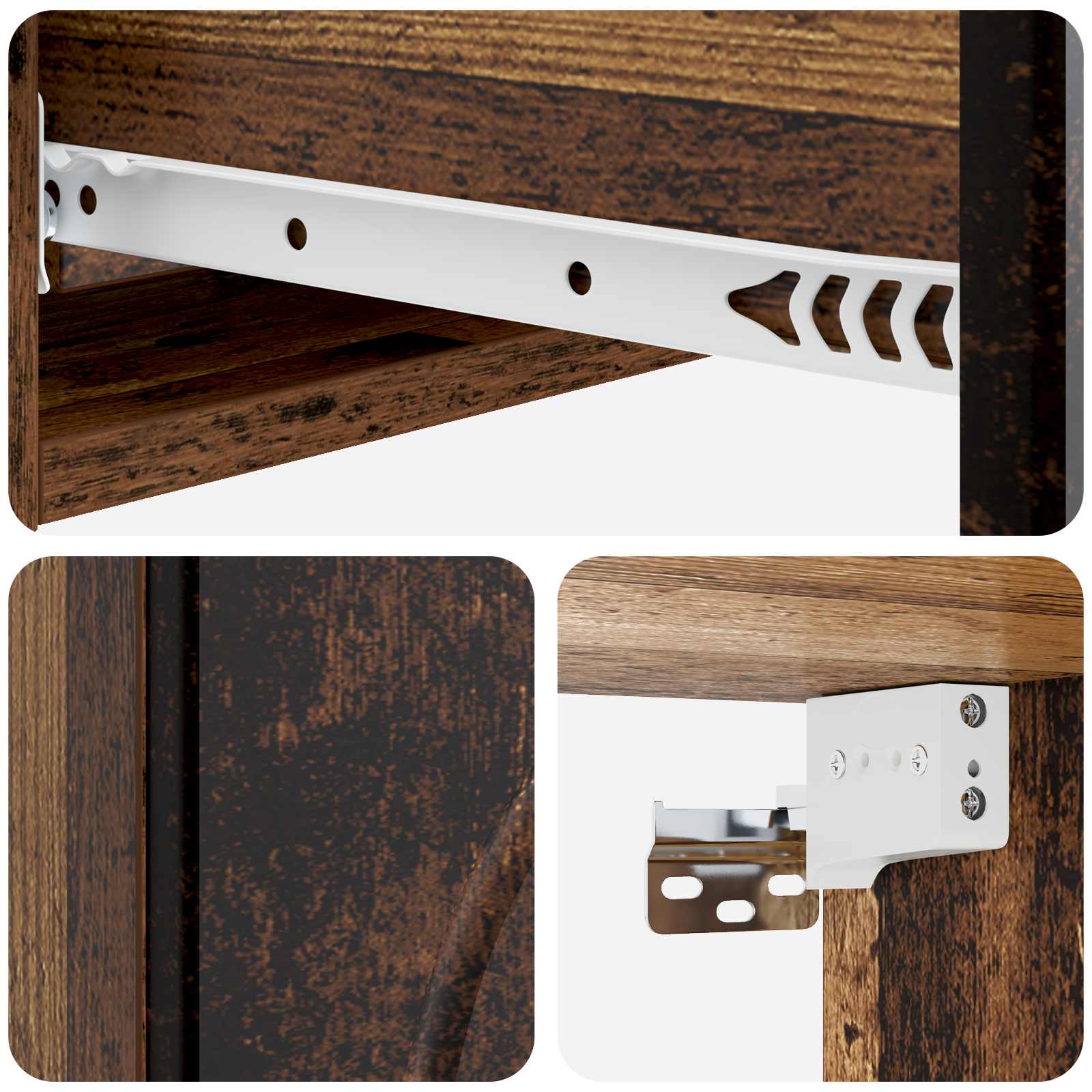 • Materiaalit: Tämä seinälle kiinnitettävä sivupöytä on tehty teknisestä puusta, joka on kestävä ja näyttää hyvältä, varmistaen pitkän käyttöajan. Tää rakenne tuo modernia ilmettä ja tukee tavaroita hyvin.