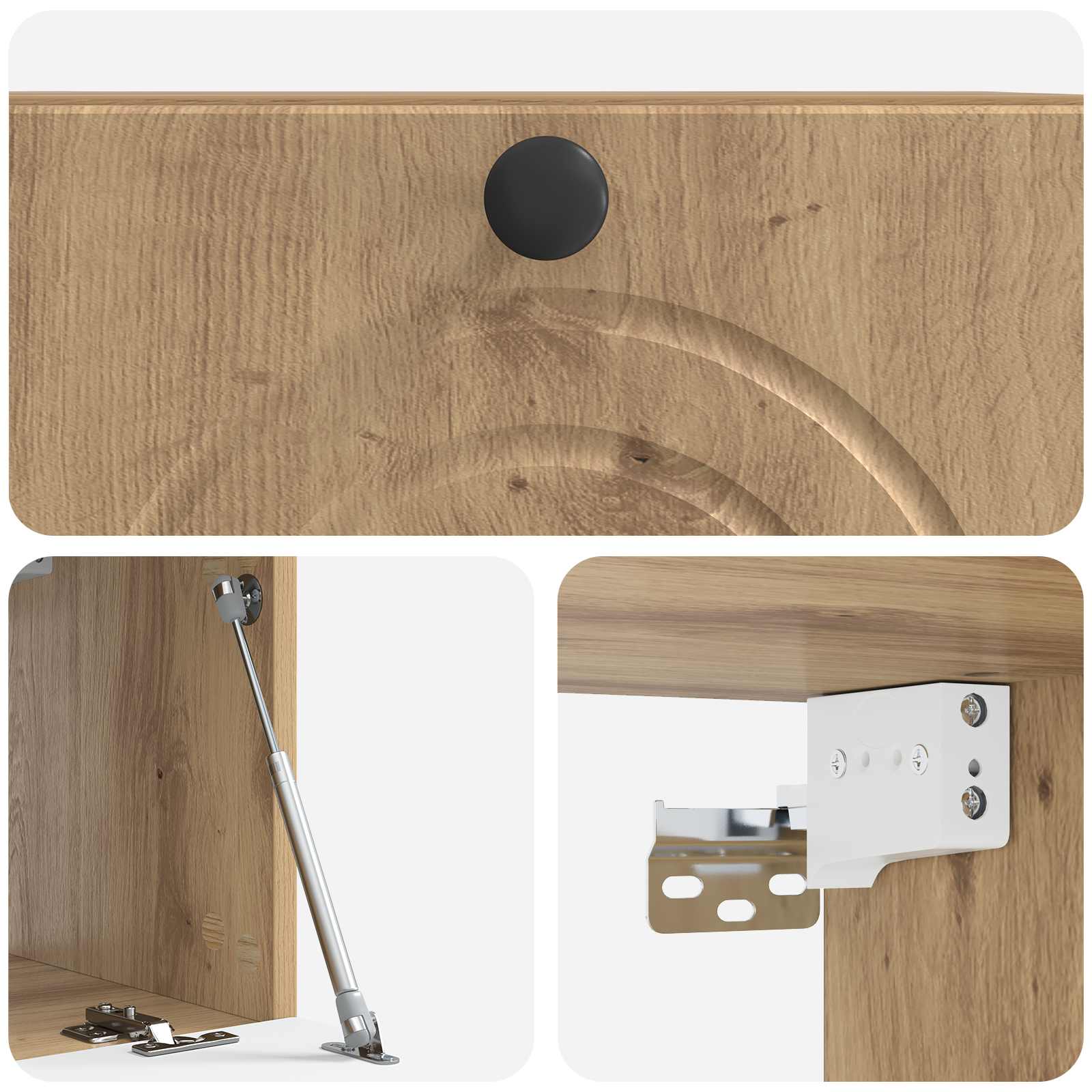 • Paketti sisältää: 90° kääntyvät saranaovet, jotka mahdollistavat helpon pääsyn sisältöön. Kestävästä puusta valmistetut ovet sulautuvat kauniisti muotoiluun. Mustat metallikahvat tuovat käytännöllisyyttä ja tyyliä.
