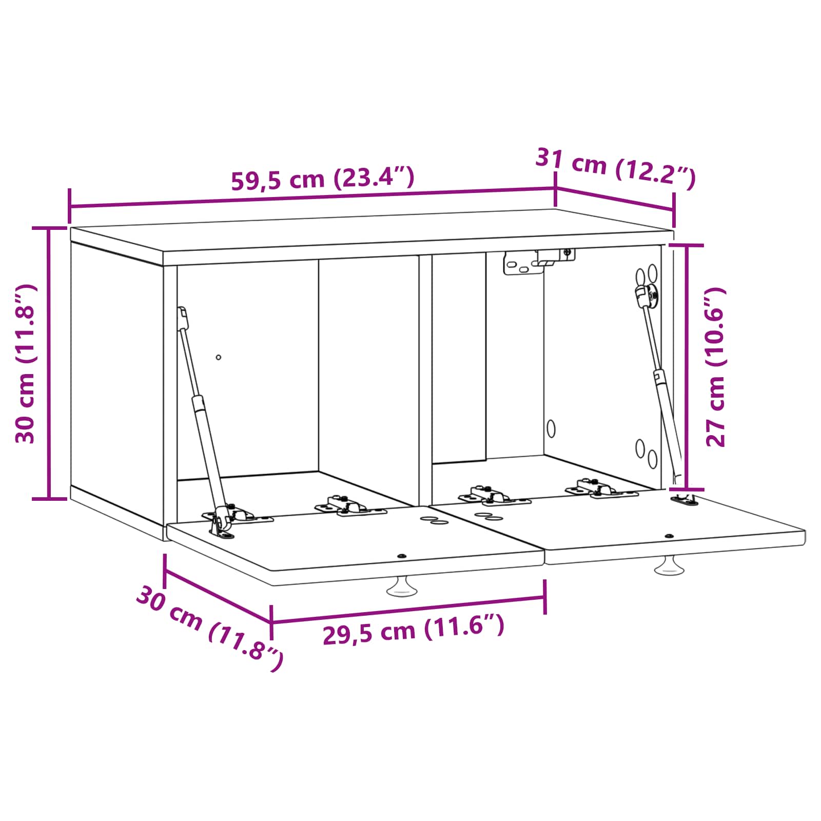 • Yleiset mitat: 59,5 x 31 x 30 cm (P x L x K)