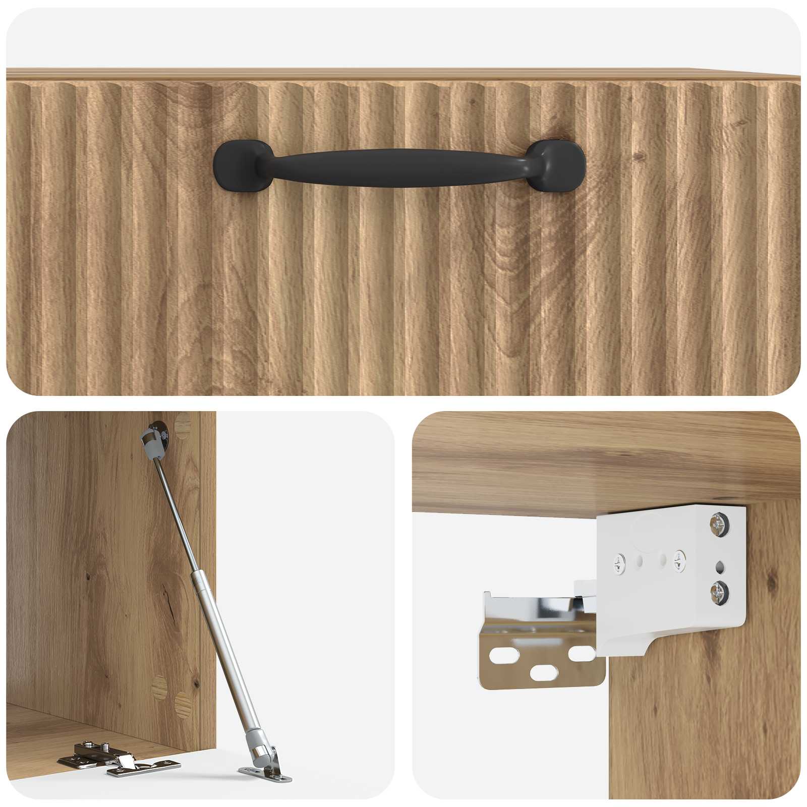 • Toiminnalliset 90° kiertosaranat: Kaapissa on kätevät 90° kiertosaranat, jotka helpottavat pääsyä säilytettävään tavaraan. Nämä ovet on rakennettu käytettäväksi helposti, säilyttäen tyylikkään ilmeen.