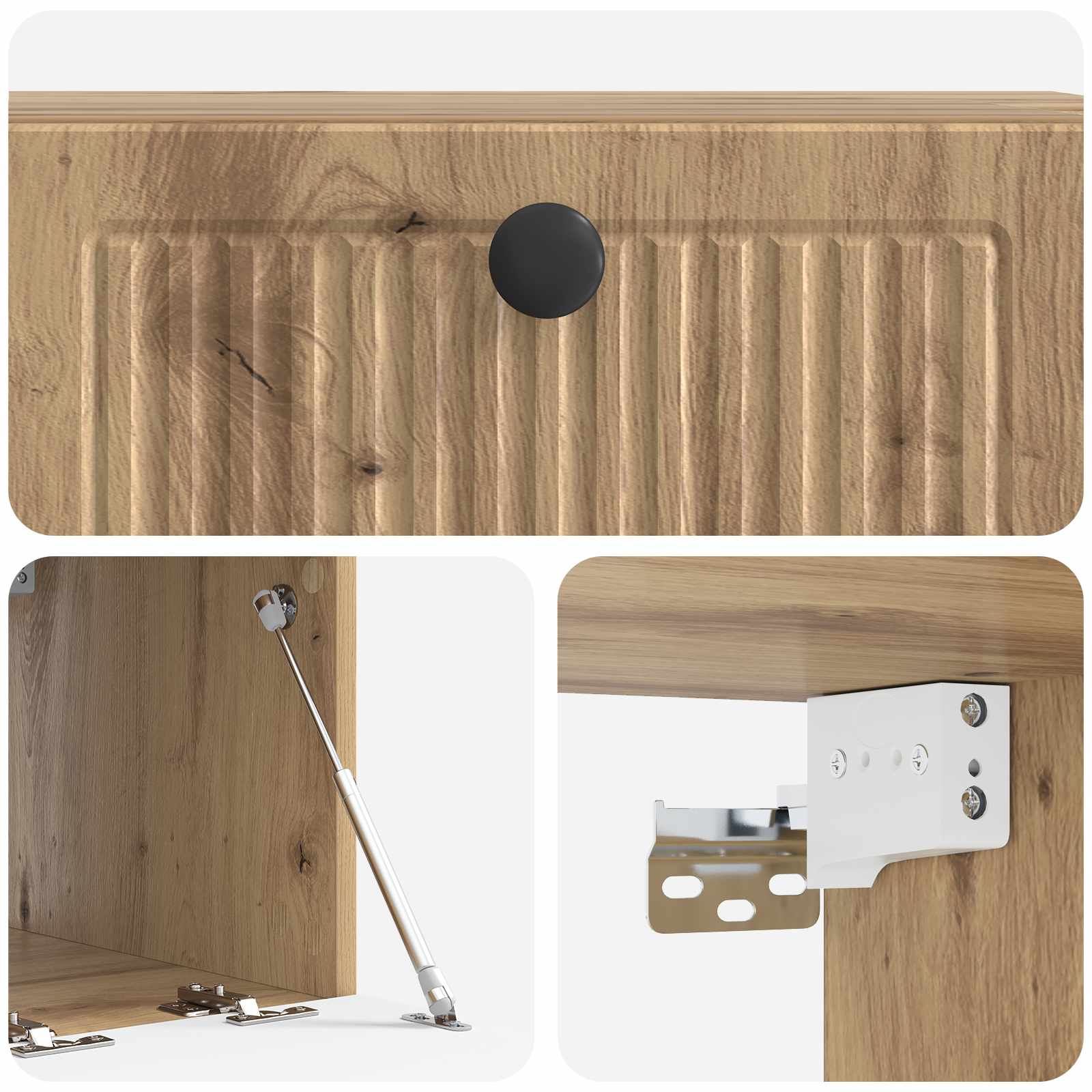 • Helppo seinäkiinnitys: Suunniteltu helppoa asentamista varten, tää kaappi kiinnitetään turvallisesti seinään, säästäen lattiatilaa ja luoden siistin ilmeen. Seuraa ohjeita huolella ja käytä seinätyypille sopivia ankkureita ja ruuveja turvalliseen asennukseen.