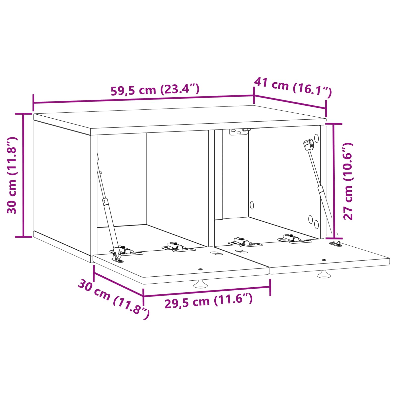 • Yleiset mitat: 59,5 x 41 x 30 cm (P x L x K)