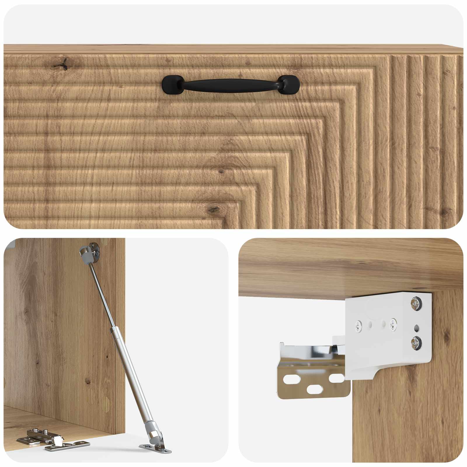 • Toiminnallisuus 90° keinusarnaovet tarjoavat helpon pääsyn sisältöön säilyttäen samalla tyylikkyyden. Tämä kaappi on suunniteltu modernin elämän tarpeita ajatellen.