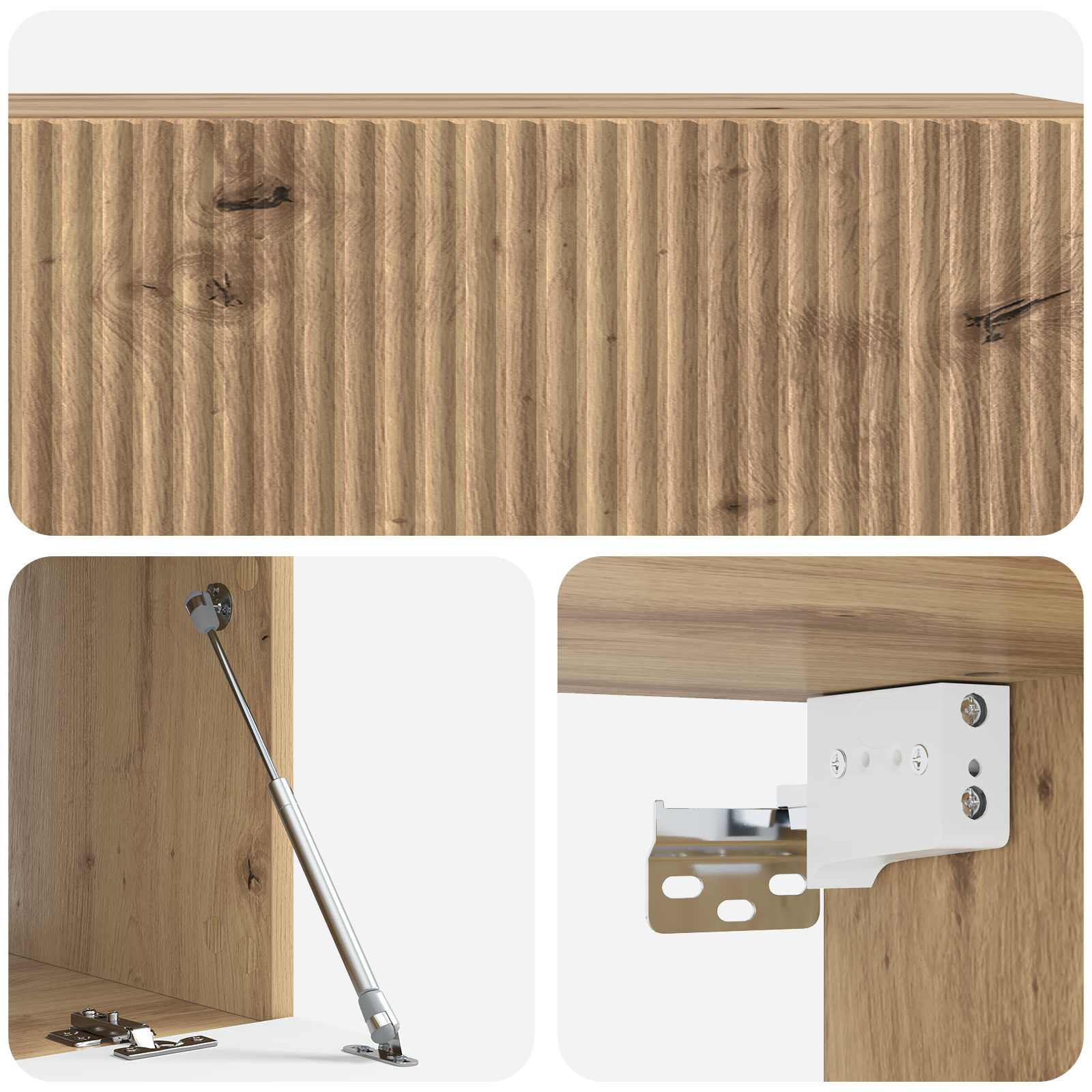 • Toiminnallinen muotoilu: Seinälle asennettava rakenne säästää lattiatilaa, joten se on loistava vaihtoehto optimointiin. Monipuoliset säilytysratkaisut sopivat elektroniikalle, tarvikkeille ja muille kodin tavaroille.
