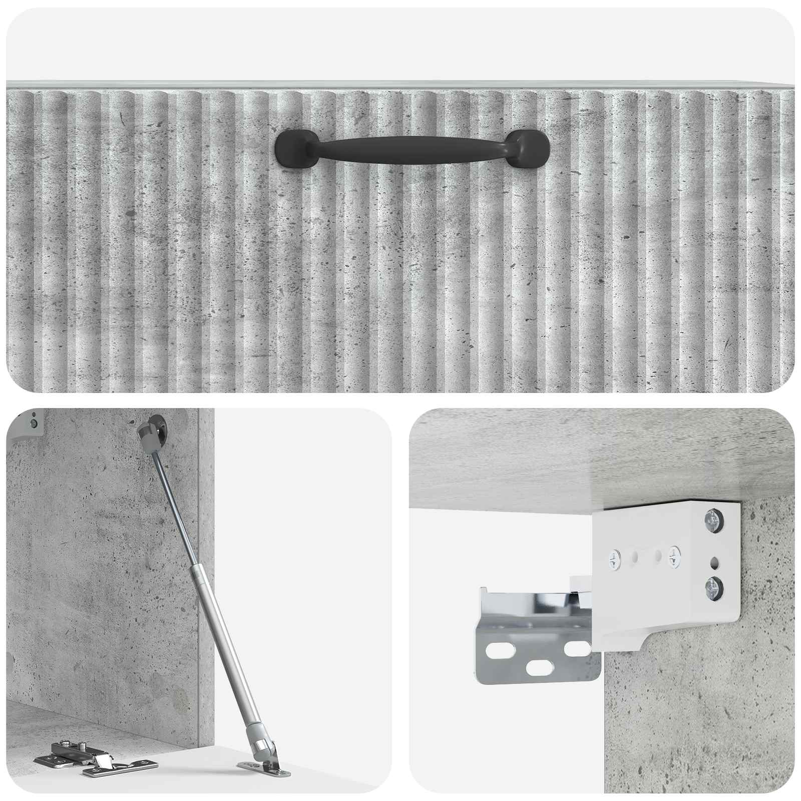 • Tyylikkäät mustat tankokahvat: Jokaisessa ovessa on pitkät mustat tankokahvat, jotka tuovat modernia eleganssia. Nämä kahvat parantavat kaapin ulkonäköä ja tekevät siitä helppokäyttöisen.