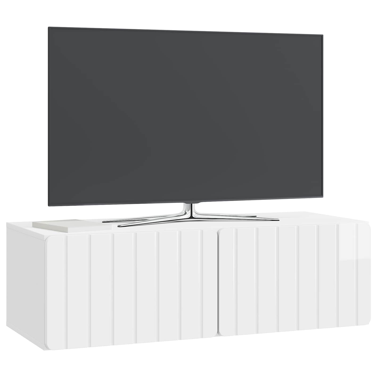 Seinälle asennettava TV-kaappi Korkeakiiltoinen valkoinen