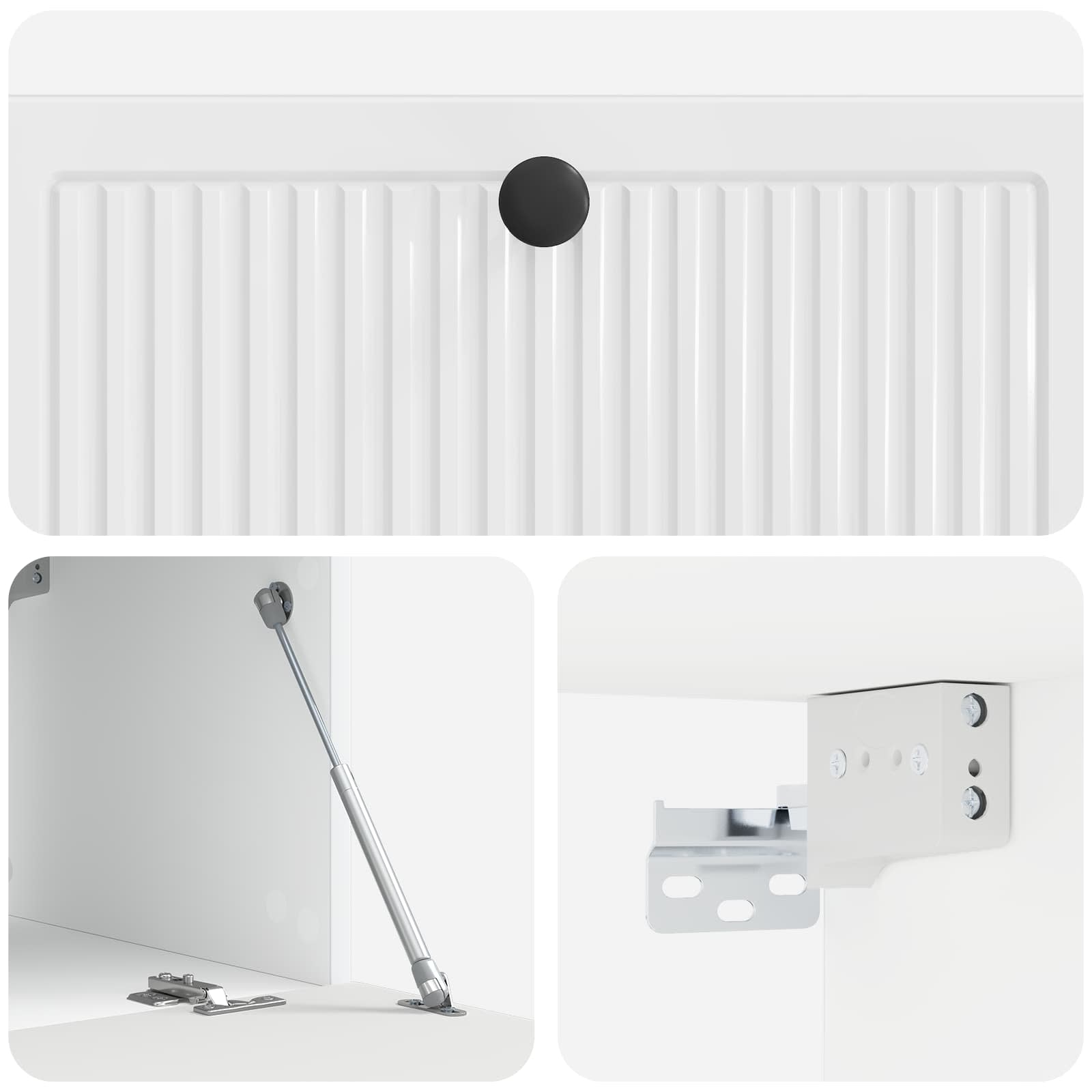 • Helppo seinäkiinnitys: Suunniteltu helppoa asentamista varten, tää kaappi kiinnitetään turvallisesti seinään, säästäen lattiatilaa ja luoden siistin ilmeen. Seuraa ohjeita huolella ja käytä seinätyypille sopivia ankkureita ja ruuveja turvalliseen asennukseen.