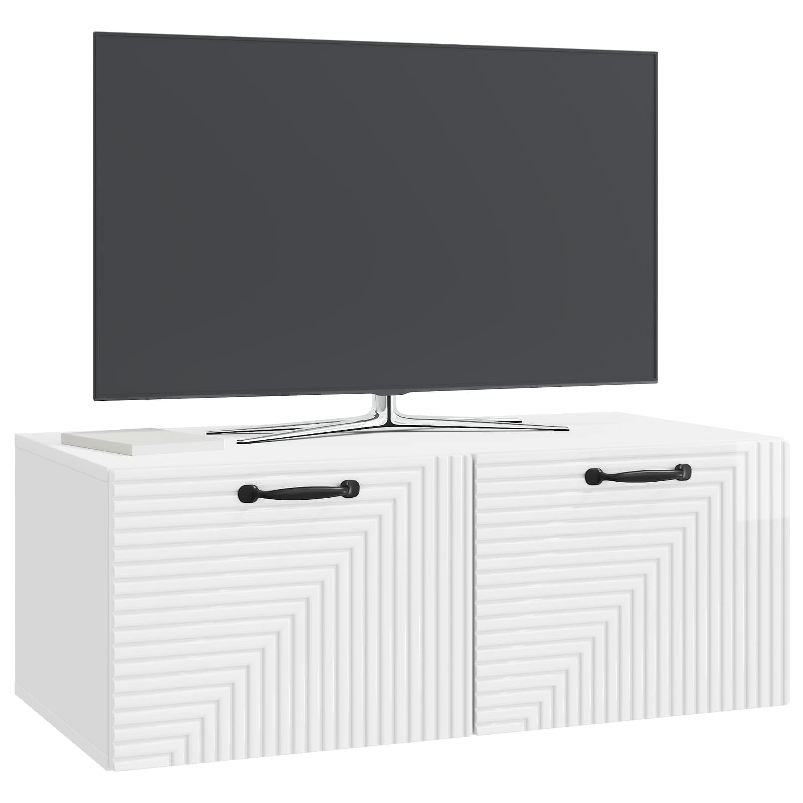 Seinälle asennettava TV-kaappi Korkeakiiltoinen valkoinen