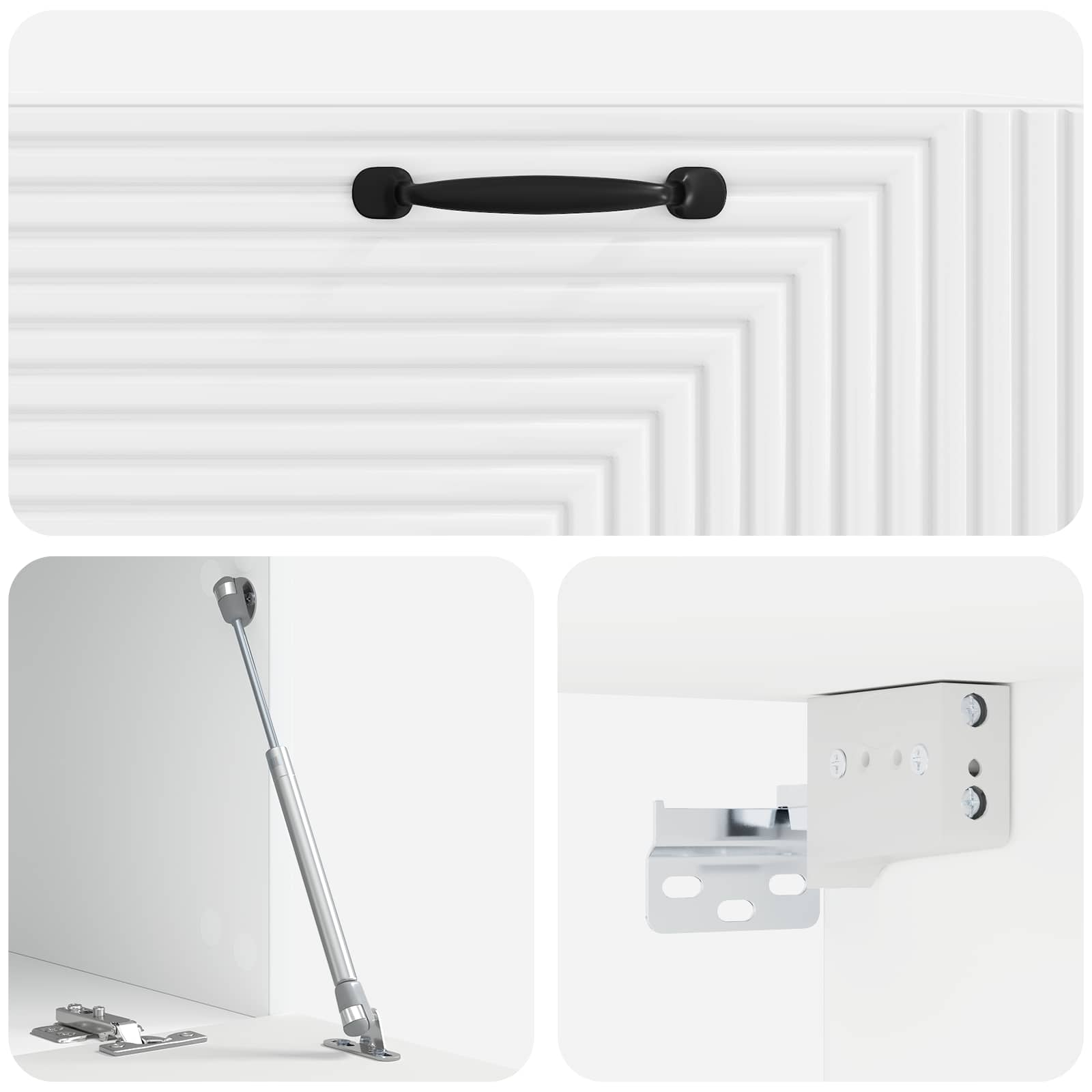 • Toiminnallisuus 90° keinusarnaovet tarjoavat helpon pääsyn sisältöön säilyttäen samalla tyylikkyyden. Tämä kaappi on suunniteltu modernin elämän tarpeita ajatellen.