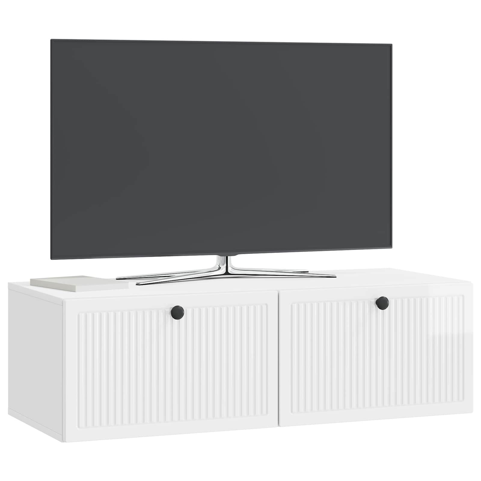 Seinälle asennettava TV-kaappi Korkeakiiltoinen valkoinen