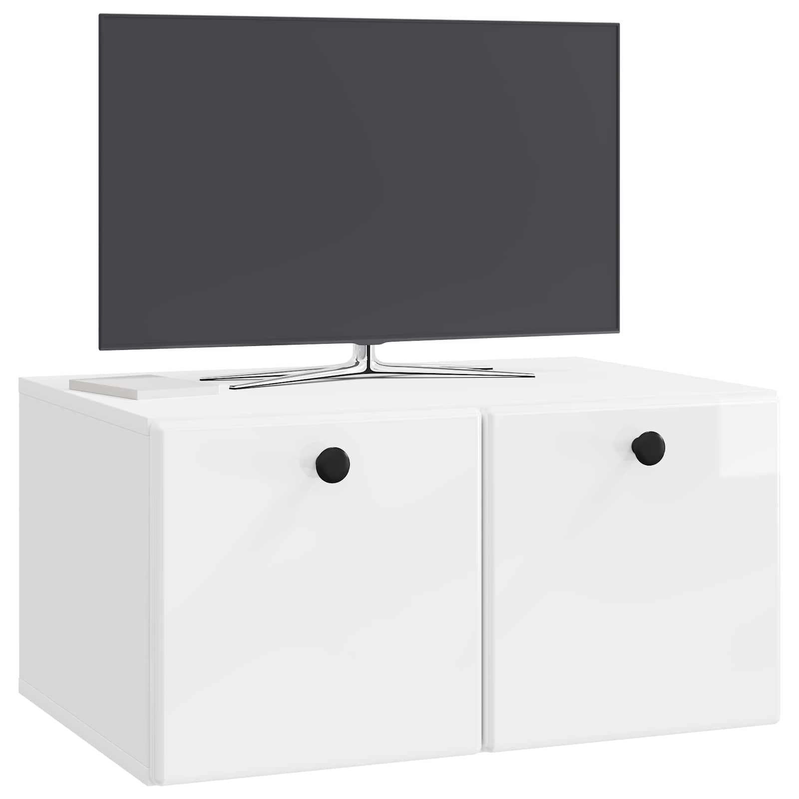 Seinälle asennettava TV-kaappi Korkeakiiltoinen valkoinen
