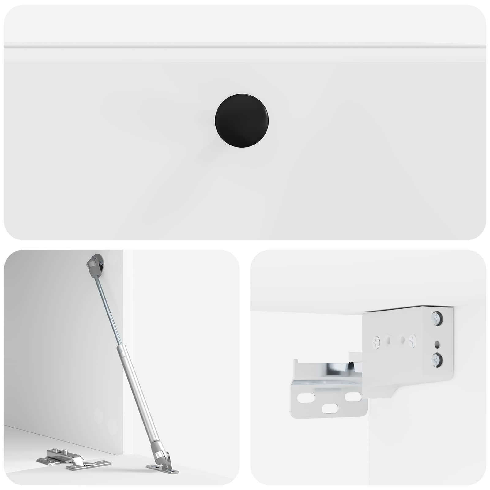 • Toimitettavat osat: 90° kääntyvät saranat ja käytännölliset metallinupit tekevät pääsystä säilytystiloihin vaivatonta. Kaikki osat on suunniteltu niin, että säilytys on helppoa ja siistiä, mikä auttaa luomaan järjestelyyn mukautuvan ulkonäön. Seinäasennus antaa lisää lattiatilaa ja sulautuu kauniisti oleskelualueisiin.
