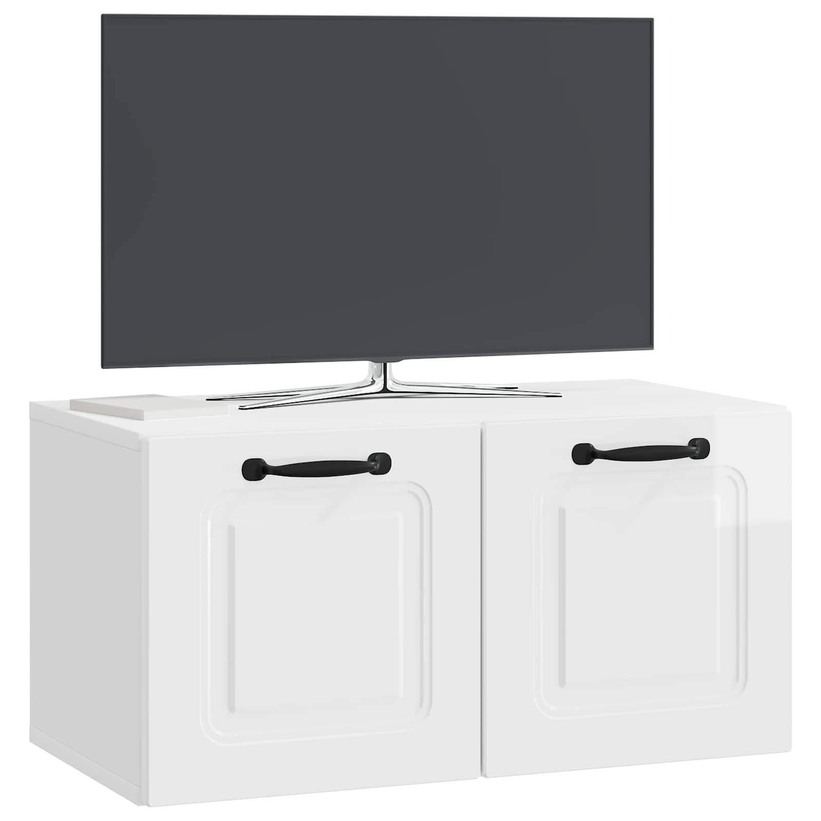 Seinälle asennettava TV-kaappi Korkeakiiltoinen valkoinen