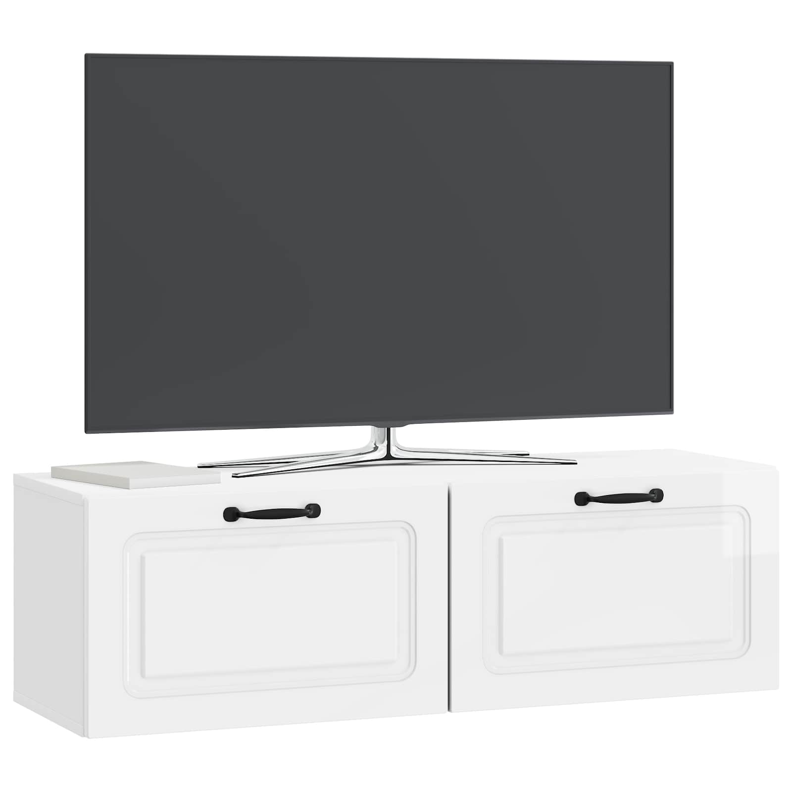 Seinälle asennettava TV-kaappi Korkeakiiltoinen valkoinen