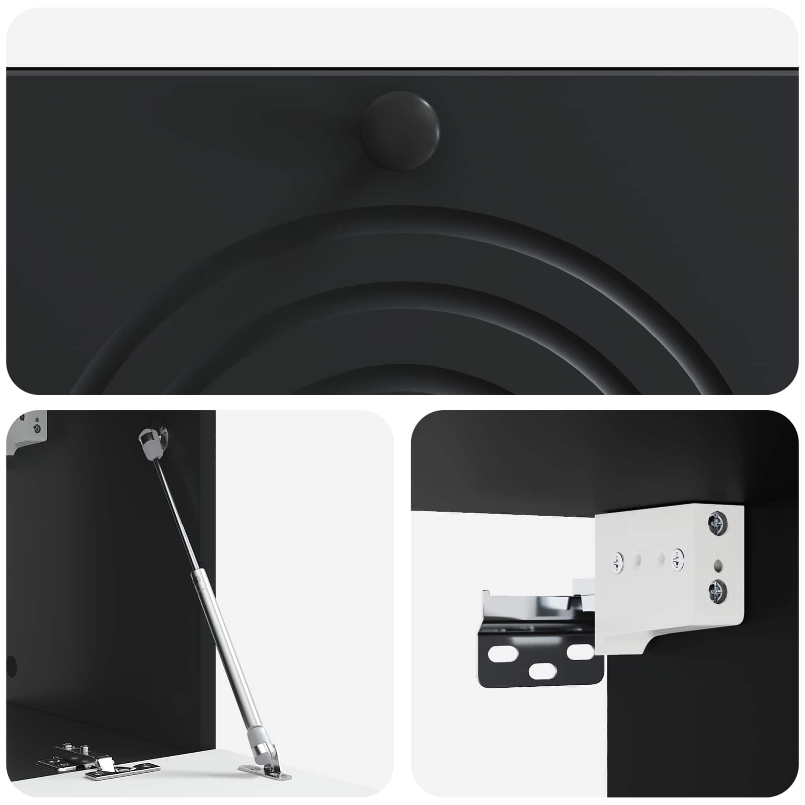 • Paketti sisältää: 90° kääntyvät saranaovet, jotka mahdollistavat helpon pääsyn sisältöön. Kestävästä puusta valmistetut ovet sulautuvat kauniisti muotoiluun. Mustat metallikahvat tuovat käytännöllisyyttä ja tyyliä.