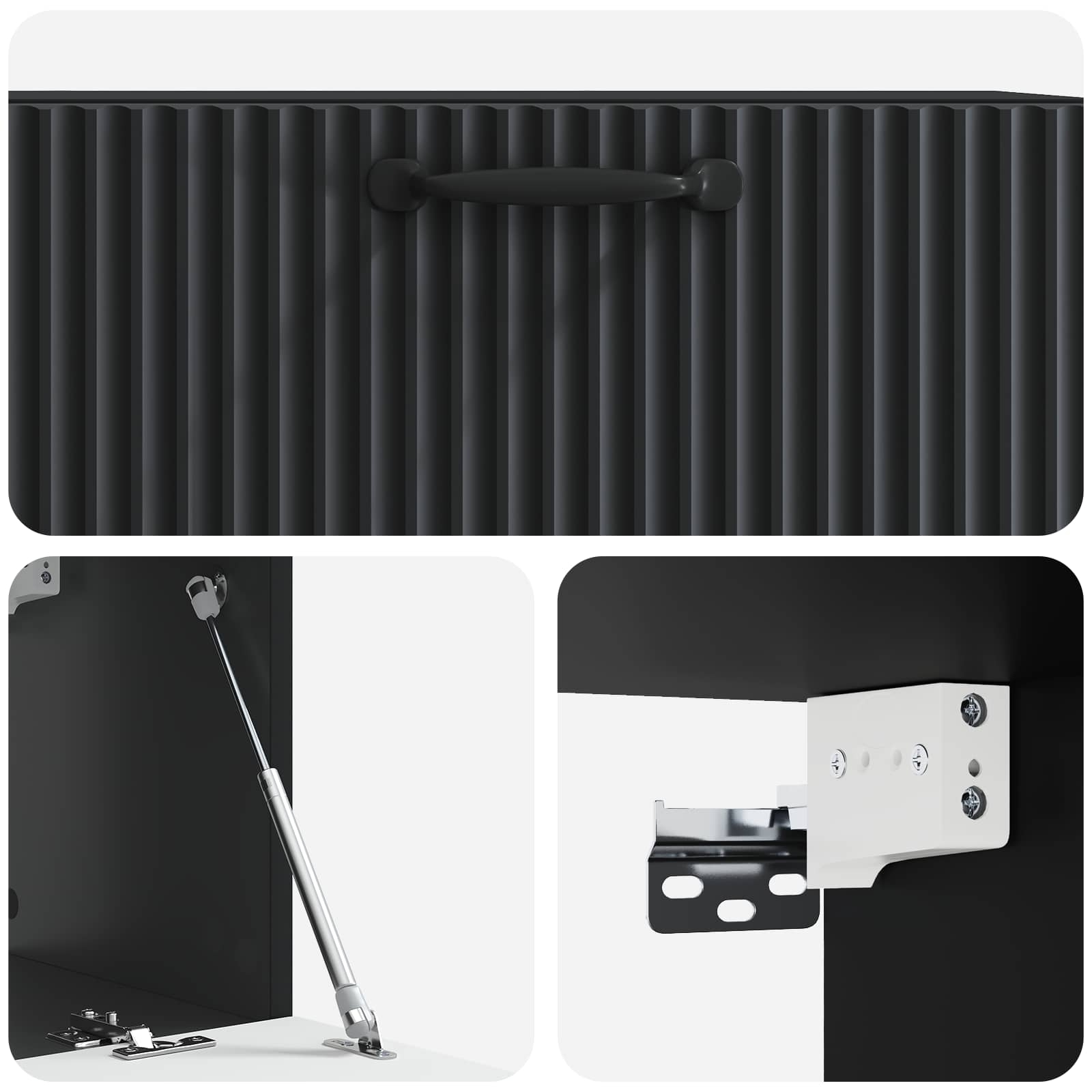 • Tyylikkäät mustat tankokahvat: Jokaisessa ovessa on pitkät mustat tankokahvat, jotka tuovat modernia eleganssia. Nämä kahvat parantavat kaapin ulkonäköä ja tekevät siitä helppokäyttöisen.