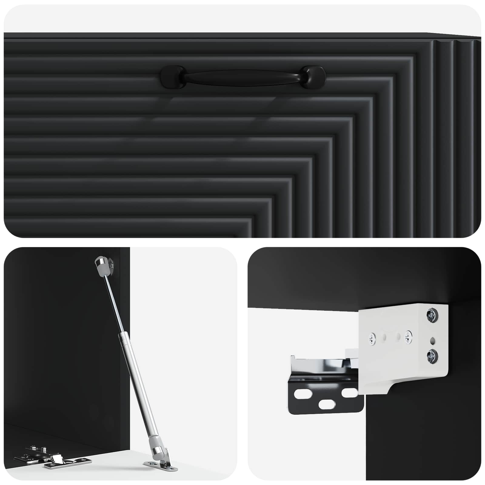 • Toiminnallisuus 90° keinusarnaovet tarjoavat helpon pääsyn sisältöön säilyttäen samalla tyylikkyyden. Tämä kaappi on suunniteltu modernin elämän tarpeita ajatellen.